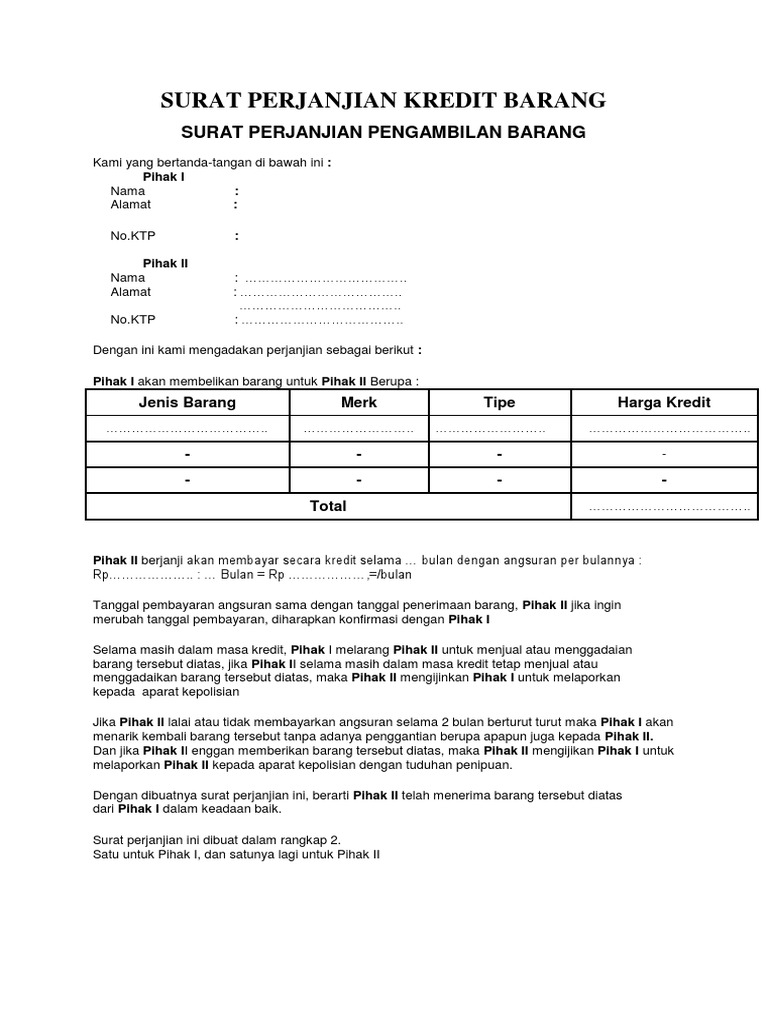 Surat Perjanjian Kredit Barang Pdf